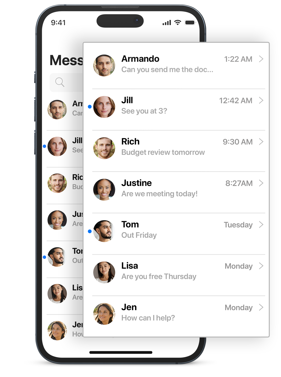 Users can continue using their iPhones as usual to send and receive iMessages, SMS, and WhatsApp Messages with the native applications. No new number or app is required.